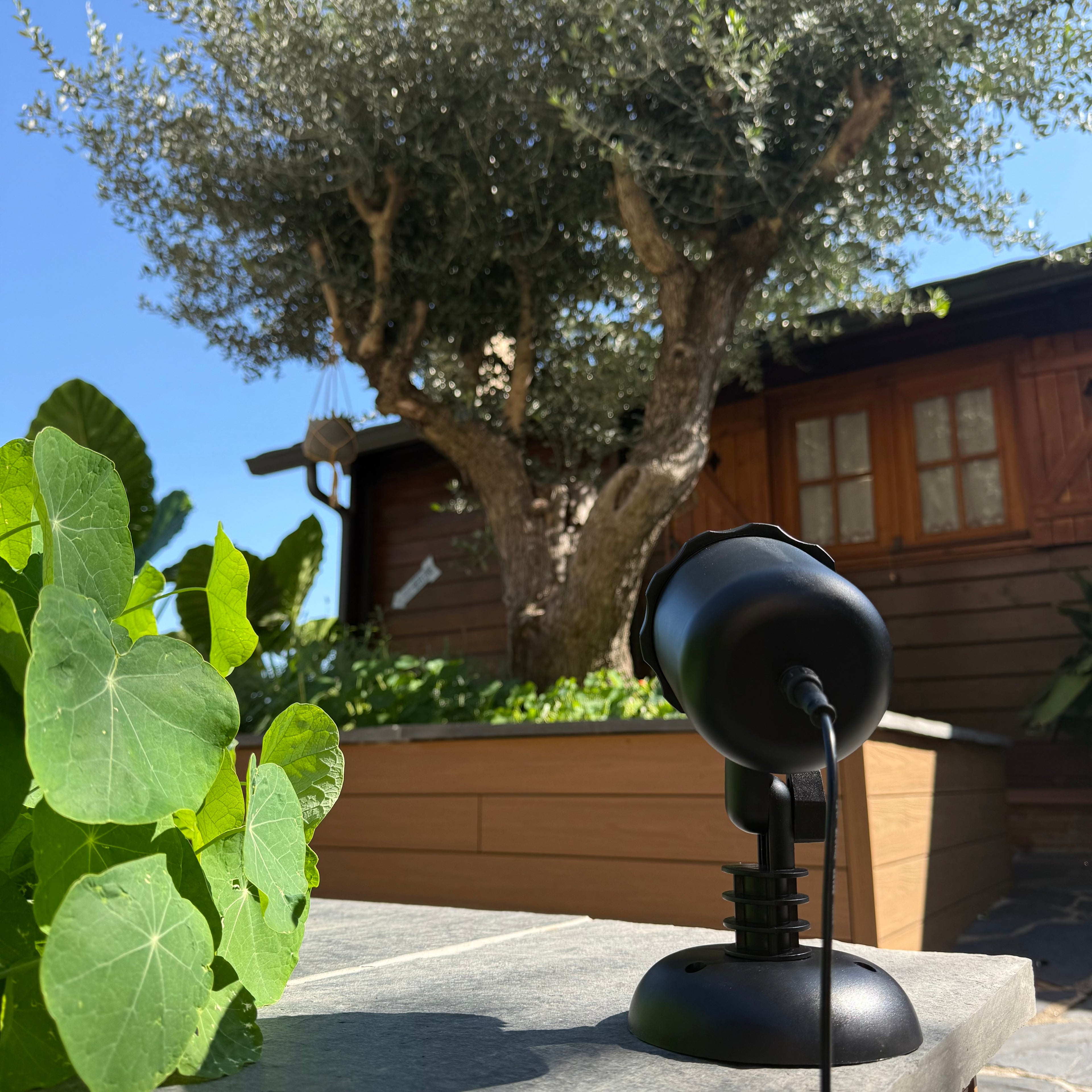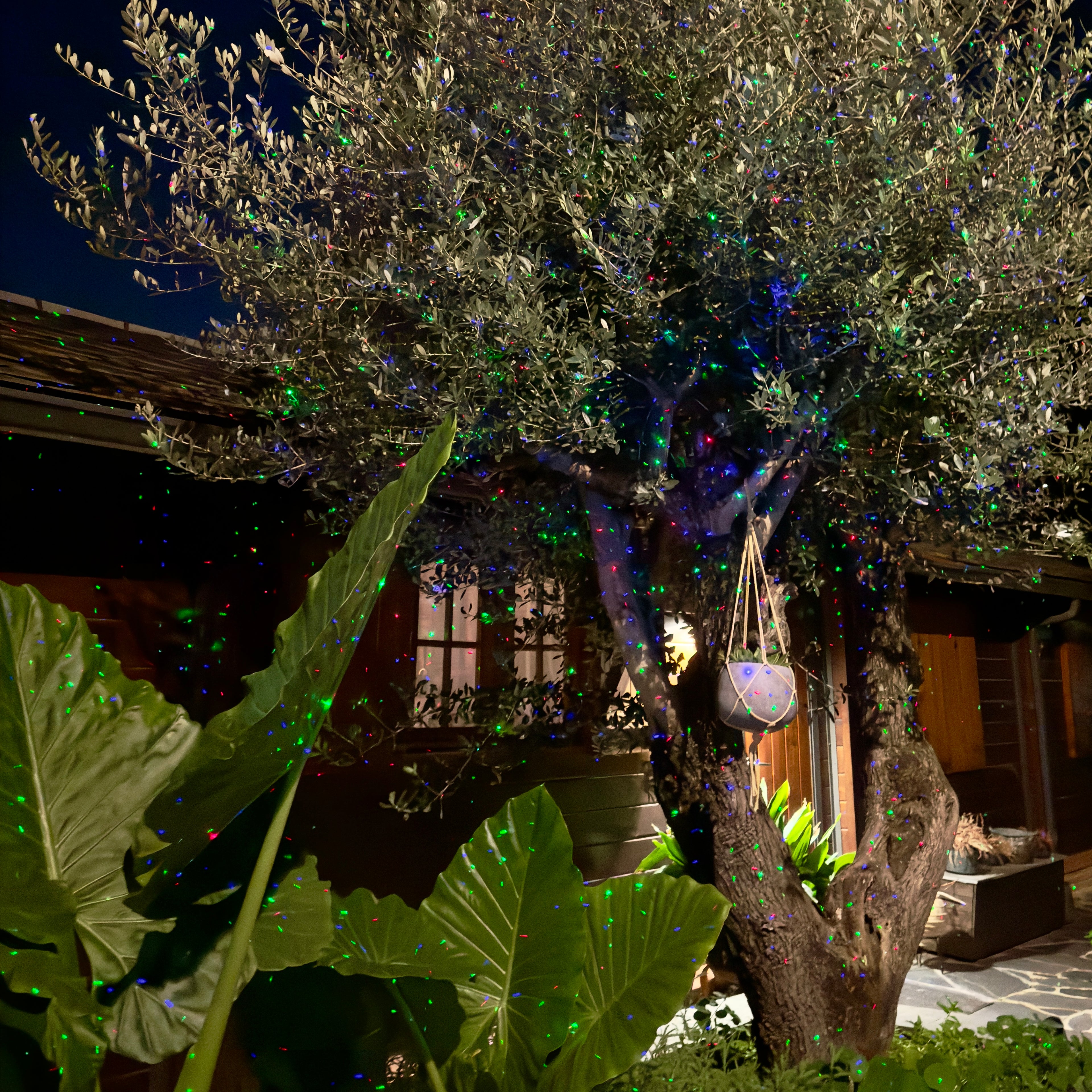 Puedes usarlo en habitaciones, fachadas, jardines, terrazas, árboles, piscinas o paisajes amplios, cubriendo incluso zonas con profundidad o desnivel gracias a la potencia de sus luces láser.