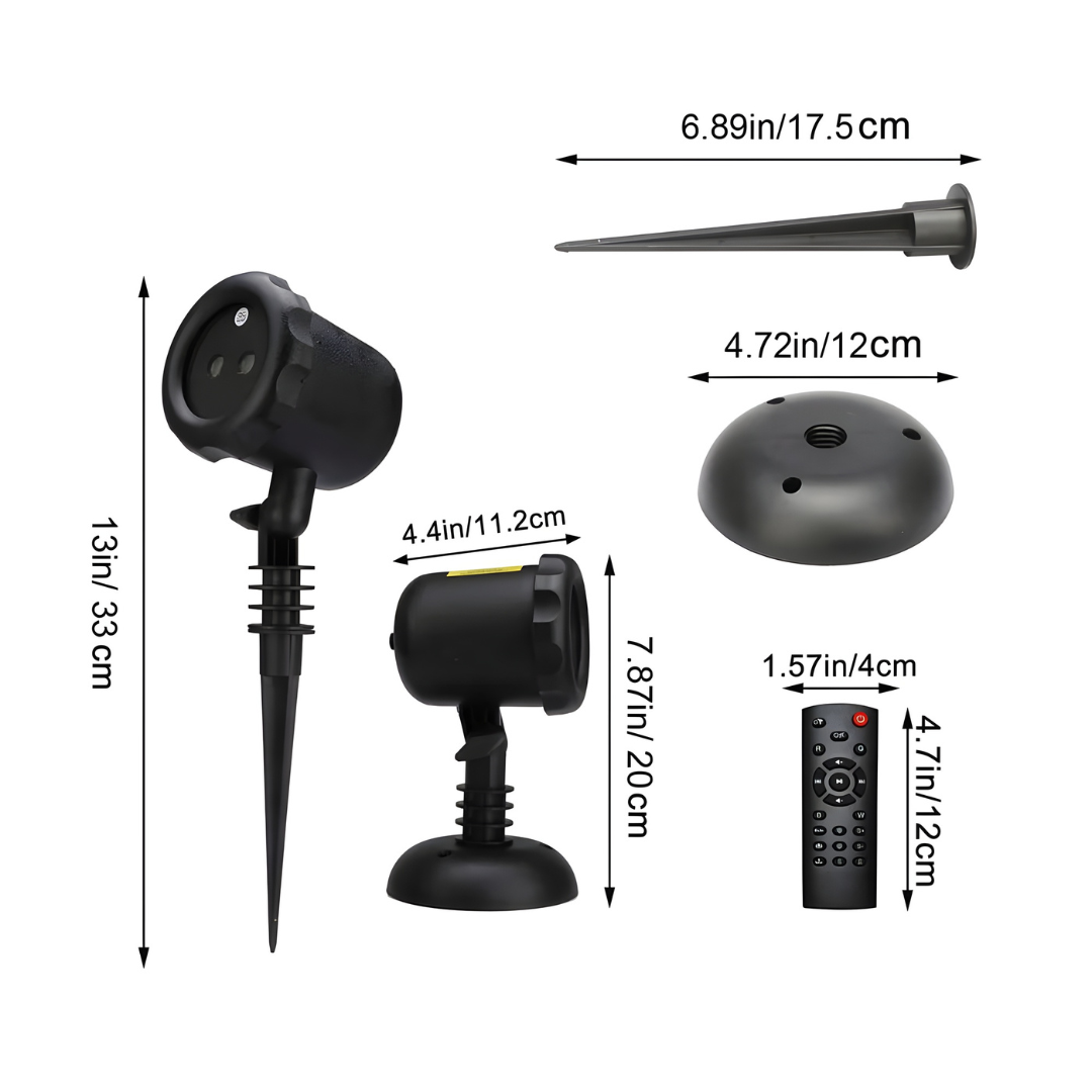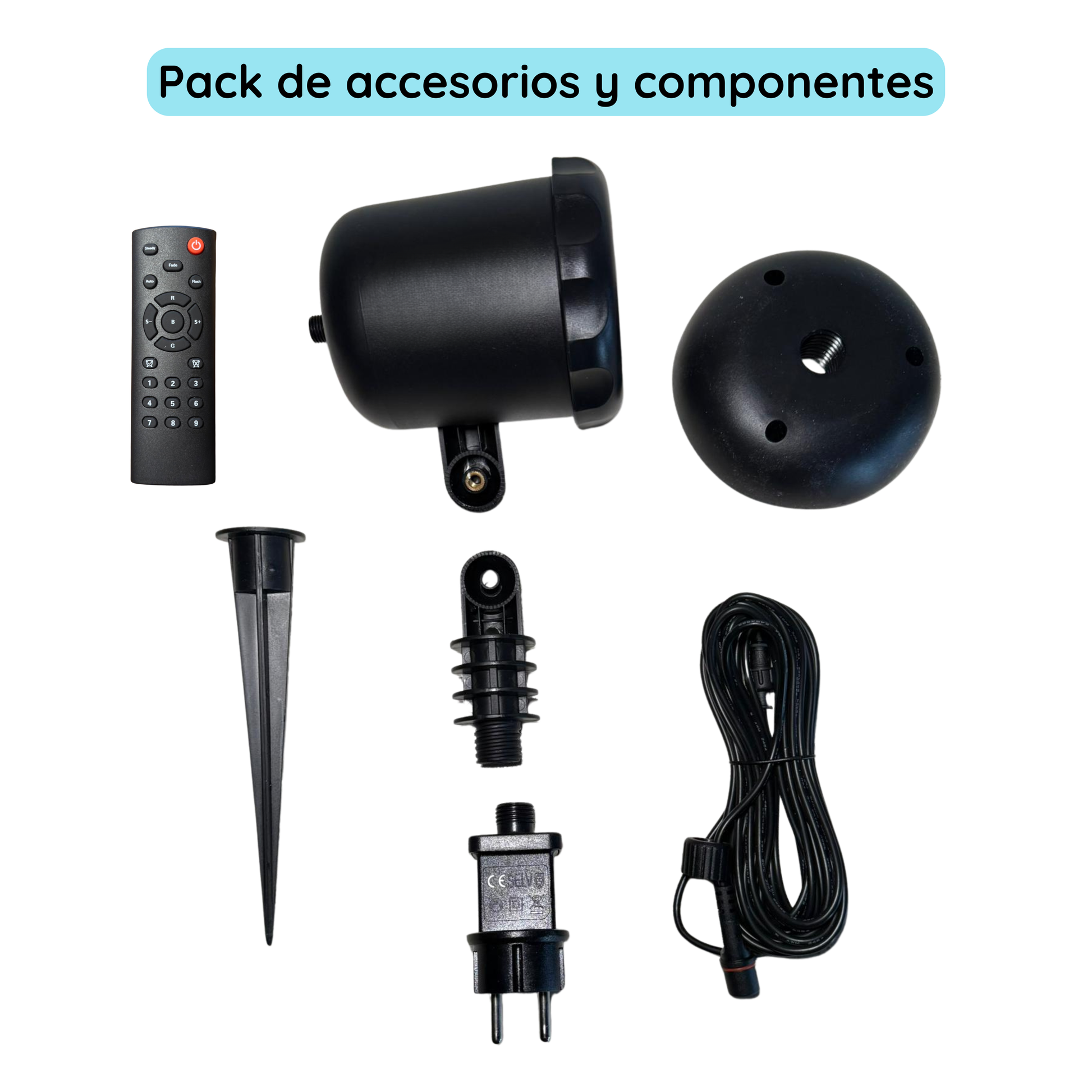 💡 Proyector láser Project LX Pro (IP65) – resistente al agua y al polvo.🔌 Adaptador de corriente