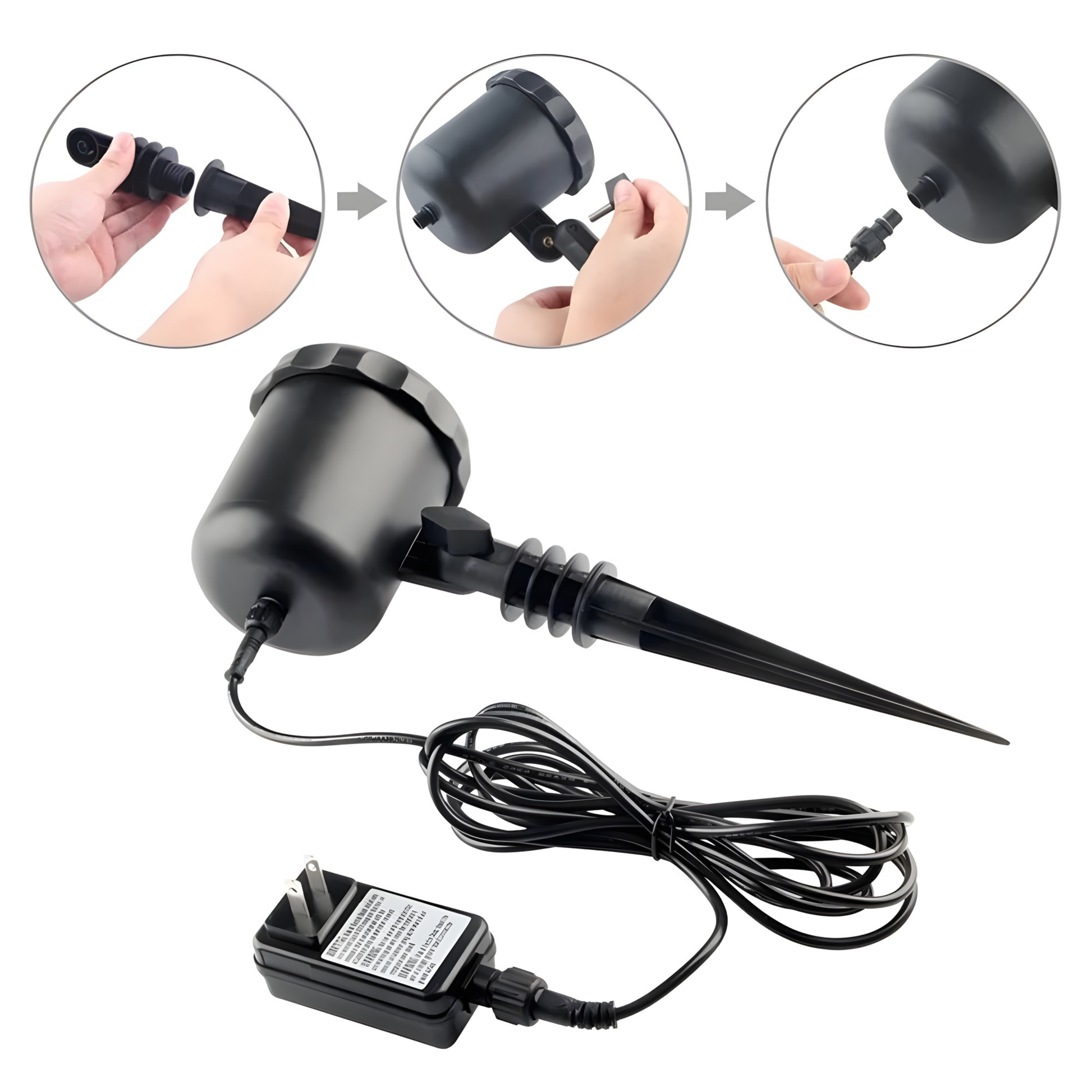Usarlo es tan simple como enchufar y disfrutar: solo necesitas conectarlo a la corriente, colocarlo en el lugar que prefieras y apuntar la lente hacia la zona que quieras iluminar.